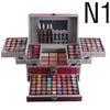 The cosmetic case contains: Bottom layer: 54 color eye shadow+40 color eye shadow on the top layer, 94 color eye shadow in total (of which, eye shadow is 40 matt eye shadow+54 color pearl eye shadow); 12 color concealer, 12 color lipstick, 3 color powder, 3 color powder blusher, 3 color silhouette powder, 5 color eyebrow powder, 2 lipliner pens, 2 eyeliner pens, 4 sponge sticks.